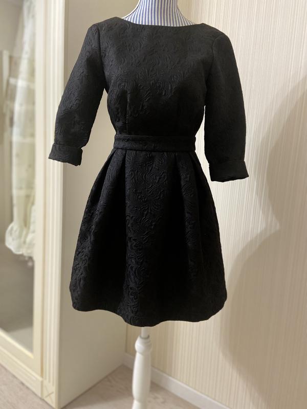 Женское платье. Размер XS. Держит форму, удобная на спинке красивый вырез. Цвет черный. На фото не сходится молния потому что за большой маникен. Бирки со смыслом ткани нет. Дефектов нет
