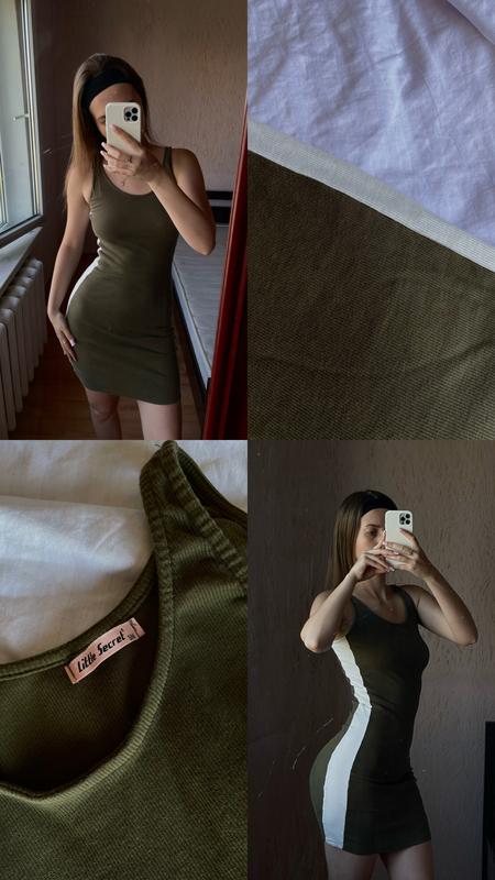 Платье Хаки с белыми вставками сбоку, приталенное, размер S, хорошее состояние.