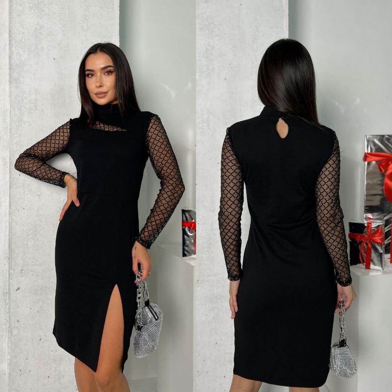 Сукня Модель 156 Ткань: креп дайвинг, сетка Размер: 42-44, 46-48, 50-52 Цвет: черный Цена: 640 грн. Эффектное черное платье миди с очень красивыми рукавчиками из сетки. Платье садится по фигуре. Застегивается на пуговицу. Сетка добавляет шарма в праздничный образ 🎄 Замеры по изделию: Размер 42-44 Ог 41 см, вот 37 см, ос 44 см, плечи 37см, длина изделия 100 см, длина рукава 59 см Размер 46-48 Ог 45 см, вот 41 см, ос 48 см, плечи 39 см, длина изделия 100 см, длина рукава 59 см Размер 50-52 Ог 49 см, от 45 см, ос 52 см, плечи 41 см, длина изделия 102 см, длина рукава 60 см Замеры по ткани. Возможна погрешность 1-2см. Ткань хорошо тянется. Качество 💣милан