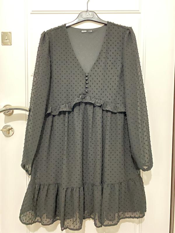 Женское платье с длинным рукавом, cropp, размер xs, можно и s, цвет черный. Красиво смотрится на теле. Длина 86 см, ог 44 см.
