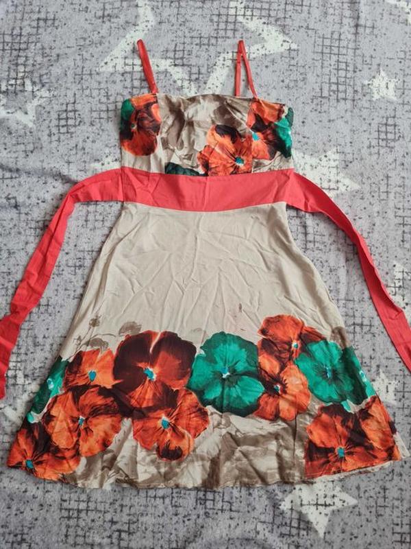Продам отличное платье- сарафан. Натуральная ткань, как новая, одета один раз, бретельки регулируются. Размер М, дополнительные замеры отправки кому понравится.