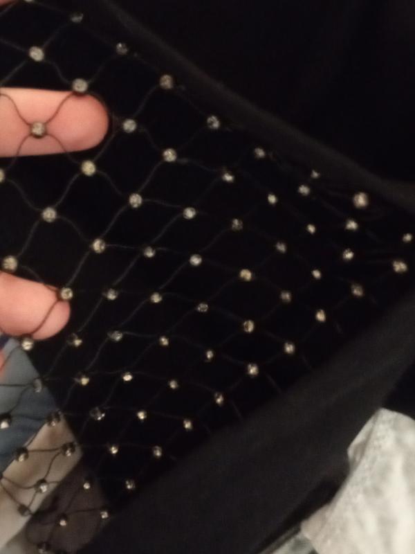 красивое короткое чёрное платье, сбоку и на рукавах украшена сеточкой с камушками. размер Л/мин.