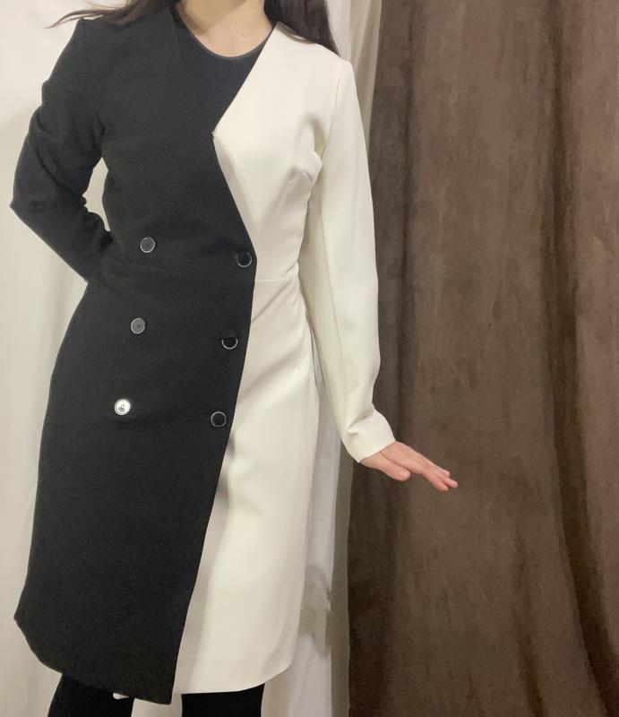 Платье-пиджак Burvin, половина белая, половина черная в размере 48 хл, ткань качественная, костюмная, ни разу не одевалась.