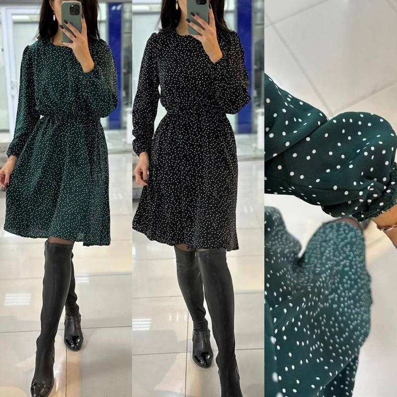 ☺️Сукня 🙂 Модель 050 Размеры: 42-44,46-48,50-52 Ткань: шелковый софт Цвет: бутылка и белый горох, черный и белый горох Цена 550 грн 🔥👄 ✔️ талия и рукав на резинке.кабл