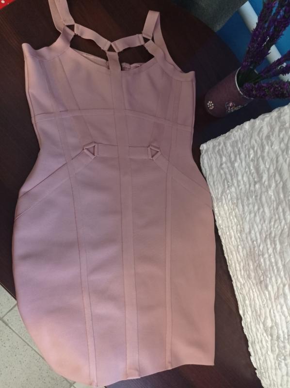 Красивое пудровое платье, плотная красиво держит форму, очень стильная и актуальная