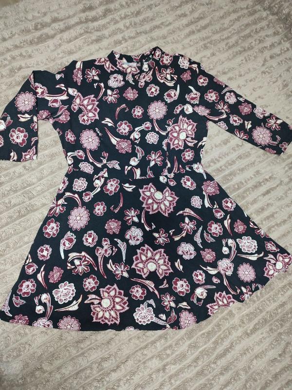 Черное платье, в цветочном принте. ПОГ 52 ПОТ 43 Длина 85 Рукав 45