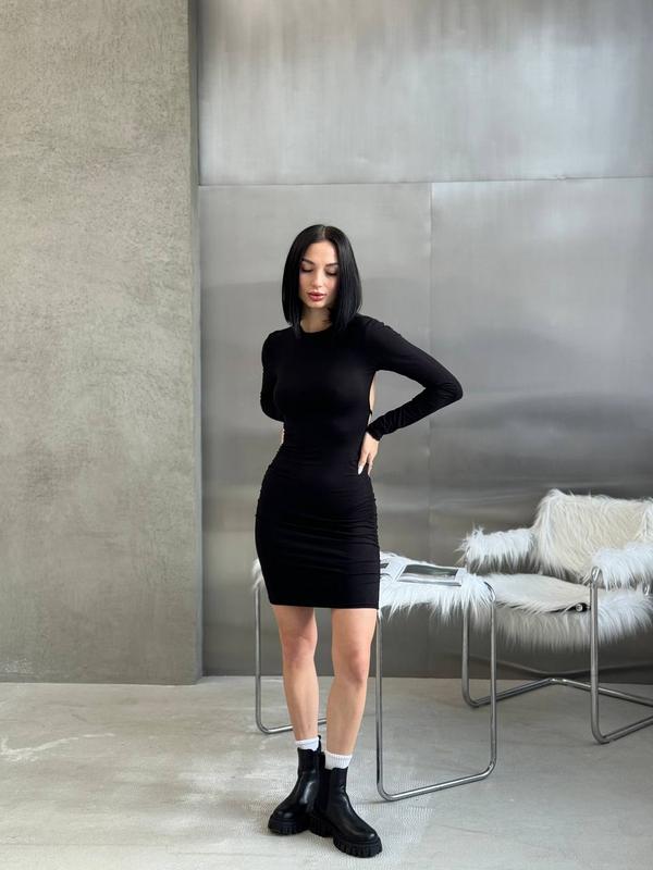 Фото Реал📸🔥 Сукня💔 🏷новая Цена: 495 грн ▪️Мод: 725 ▪️Размеры: 42-46(one size) ▪️Ткань: вискоза ▪️Цвет: черный Маленьких черных платьев много не бывает😍 Уверены, что эта станет одной из любимых🖤 Красиво садится по фигуре, ткань приятная к телу и очень хорошо тянется. 📌Замеры 42-46: Длина - 87 см Рукав от горловины - 69 см(от шва - 60 см) Груди - 80-99 см Талия - 60-76 см Бедра - 88-102 см код1755(ТСоу)