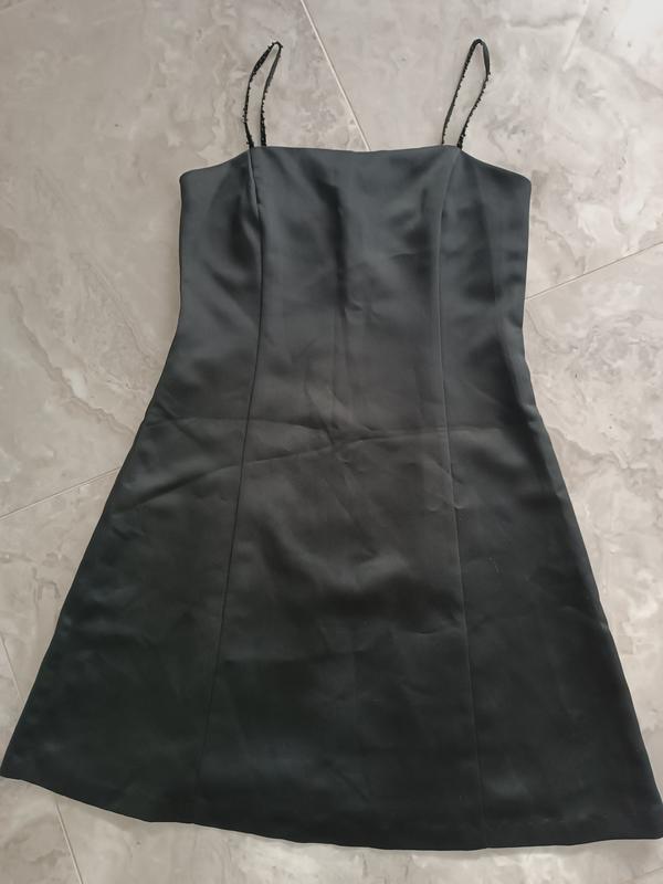 ткань напоминает атласную, но не блестящую, более матовую. приятная на ощупь. бретельки имеют нашитую бисер. к ней накидка в комплект. made in usa