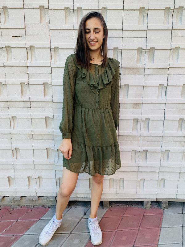 Платье зеленого/хаки кольра, прозрачное (имеющее платье-майку под низом). Может подойт на 36 размер. Рост модели 170см. Рич новая, с биркой