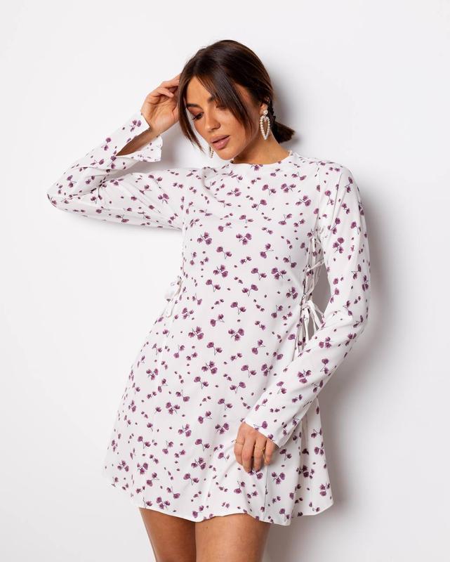 Нежное платье в цветочный принт свободного кроя с затяжками по бокам и длинными рукавами х...