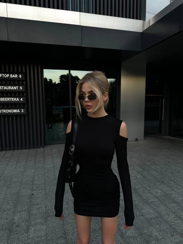 Платье Мод: 2311-710 Размер: Xs-M one size Ткань: вискоза Цвет: графит, черный Грудь – 78-96 см Талия – 58-76 см Бедра – 88-99 см Рукав от горловины – 70 см Рукав от шва – 54 см Длина – 75 см (регулируется за счет затяжек)