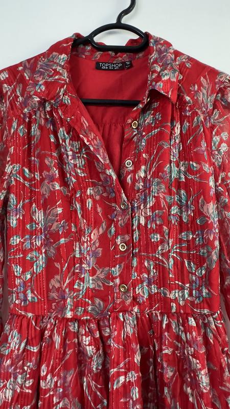 Стильное красное платье с растительным принтом прекрасно дополнение любой образ Длина – 85 см руки - 56