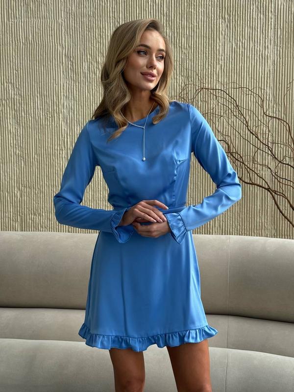 Сукня ▫️ Материал: Сатин стрейч ▫️ Цвет: бежевый, голубой, зеленый ▫️ Размеры: S, М ▫️ Длина изделия: 80 см ▫️ Длина рукава: 62 см ▫️ Параметры модели: 89-66-94 ▫️ Рост модели: 175 см ▫️ На модели размер: S