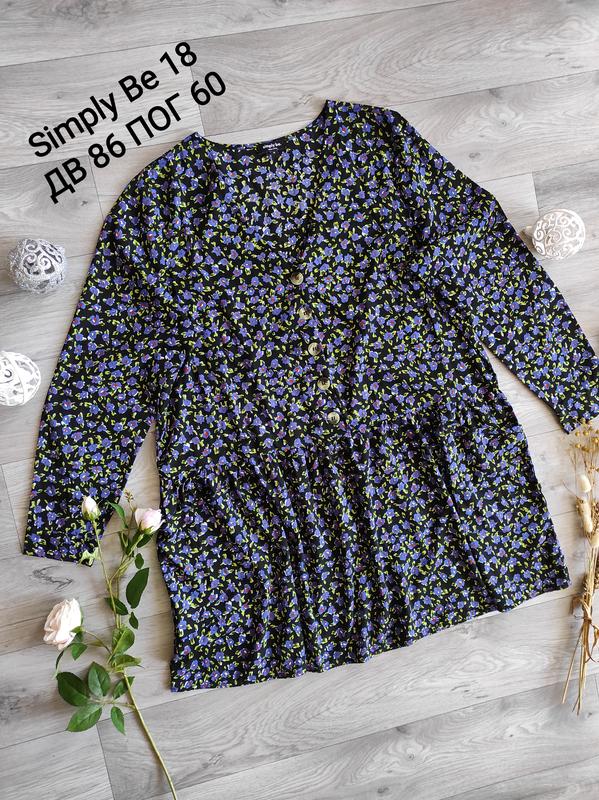 Поздравляю! Подписывайтесь на мою страницу, каждую неделю обновления много красивых вещей разного размера 💜 Стильное платье от Simply Be, по бирке 18, на наш 52-56 примерно Длина 86 ПОГ 60 Плечи 43 рукав 61 Пот 60 Очень стильная модель: V-образный вырез, большие актуальные пуговицы, рукав внизу тоже имеет пуговицу как в рубашке, талия слегка заниженная, низ с рюшей, есть карманы Ткань очень легкая, тонкая, не просвечивается, не тянется есть затяжка, совсем незаметно через принт, есть фото, сбрасыв в привод
