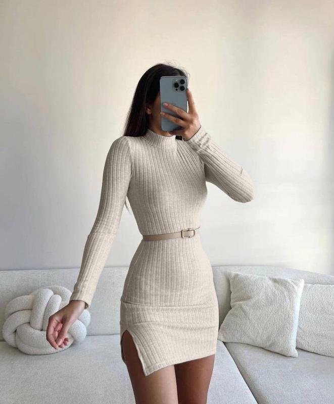 ✅НОВИНКА✅ Сукня 🚀 ▪Код товару: 800 ▪новая цена 440 грн🔥 ▪Тканина: ангора рубчик ▪Цвета: черный, меланж, беж ▪Размер:S-L(Универсал) 📌Стильное базовое платье😍высокий горло, приталенный крой, разрез с одной стороны🔥приятная ткань, тянется 🔝🥰БЕЗ ПОЯСКИ. код1905(ист)