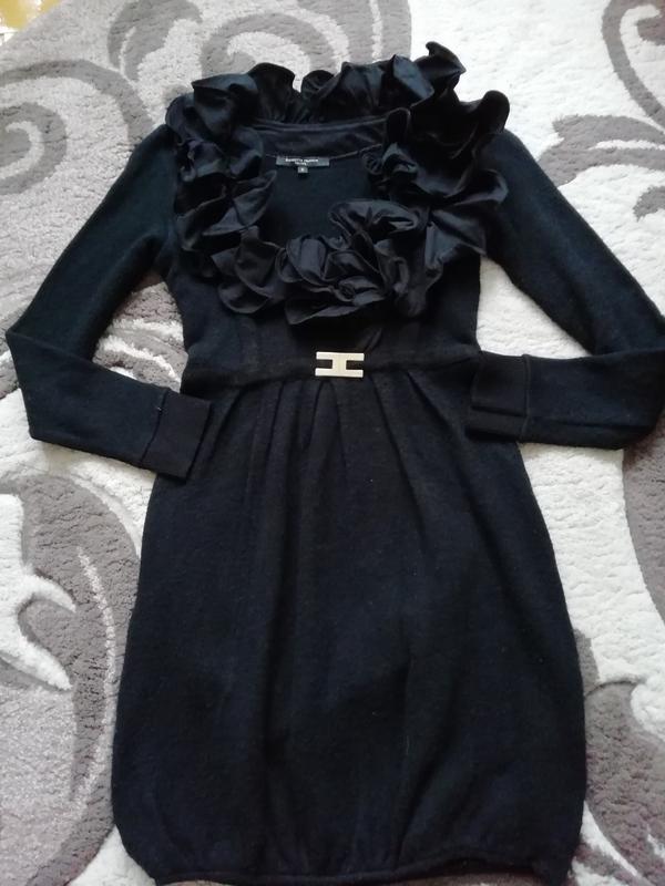 Стильное трикотажное платье с оригинальной горловиной в идеальном состоянии, одеванное пару раз. Длина по спинке 88 см. При необходимости сделать дополнительные фото и замеры.