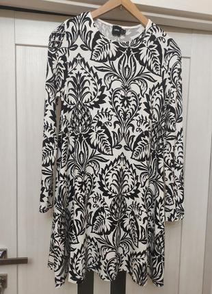 Состояние новой вещи. Фасон трапеция. Ткань очень хорошо тянется.На ярлычке UK10, EU38, US6. По замерам в спокойном разложенном состоянии: плечи-35см, от подмышки до подмышки полуобхват 42 см. Бедра свободно трапецией.Рукав от плеча 60 см. Длина общая 80см. Выглядит эффектно и стильно.
