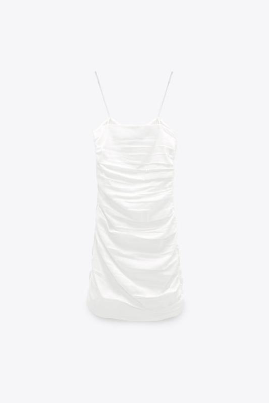 Платье от ZARA, из свежих коллекций, размер указано S. Цвет белый/молочный. Сток, состояние новой вещи без недостатков. Торгу нет! Состав: 53% коттон, 23% лен, 20% полиамид, 4% эластан. Замеры: Пог 35 см + тянется до 43 см; Пот 29 см + тягнеться до 38 см; Поб 39 см + тянется до 49 см; Длина по спинке 64 см; Длина по боковому шву 60 см.