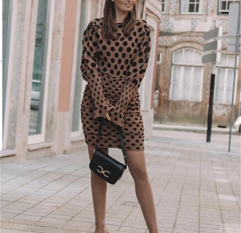 Трендовое платье платье платье с объемными длинными рукавами zara теплое с драпировкой в горох Оригинальный Размер М Идеальное состояние