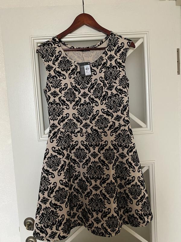 Новое платье с этикеткой.Красивой черный структурный рисунок...типа бархат Размер 18 европейский, но смотрите замеры на фото.