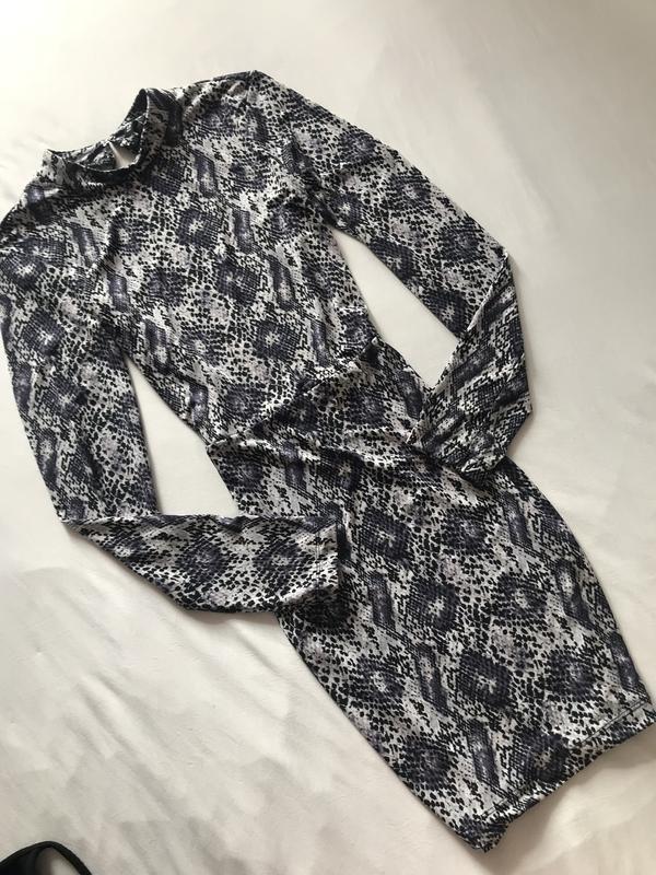 Красивое платье по фигуре в змеиный принт с открытой спиной h&m