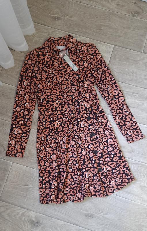 Міні сукня в анімалістичний принт, імітація запАху, збоку гудзики як декорація, розмір 12 плечі 39 см рукав 61 см пог 41 см пот 38 см поб 50 см довж від плеча 88 см тягнеться