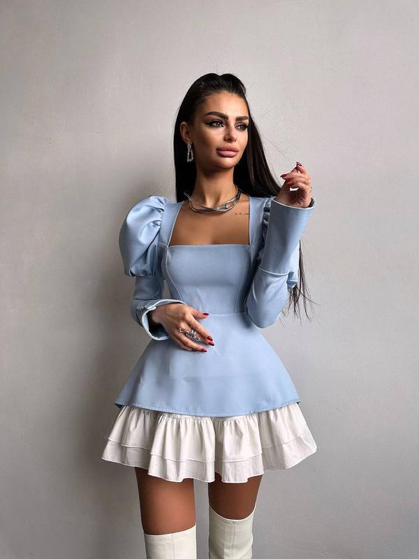 ‼️Платье под пошив, ожидать 3-8 рабочих дней!️ *Актуальные сроки отправки уточняйте у менеджера в чате перед заказом Платье с объемными рукавами + юбка с воланами ▫️тканина: костюмка, бавовна ▫️размер: S и М