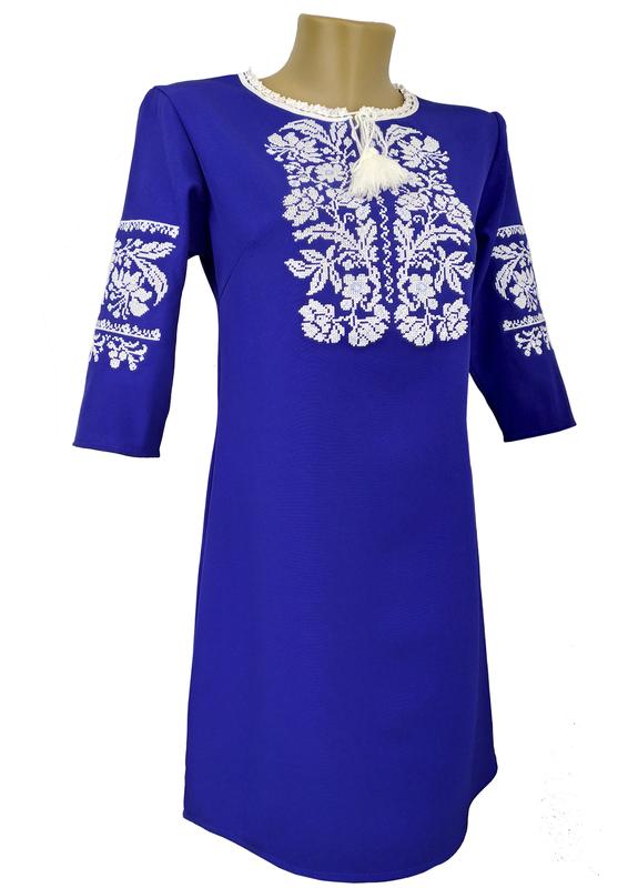 Собственное производство розничное и опт Вышивка вышита крестом, белыми акриловыми нитями. Вышивка - растительная, в виде цветов и с геометрическим узором. Рукав 3/4. Характеристика женского платья с вышивкой Платье взрослое вышитое Рукав 3/4 размер 42-48 Орнамент - Модерн белый тканина - Мадонна електрик, синя Товары в основном присутствуют в наличии, на складе. При отсутствии товара пошив его займет 1-4 дней Параметры изделий могут отличаться 1-2 см Выбирая размер ориентируйтесь по размерной таблице, рекомендовано обхват груди должен быть в изделии на 3-5 см больше, чем обхват тела. обхват – бедра должна быть в изделии на 0-5 см больше, чем обхват тела.