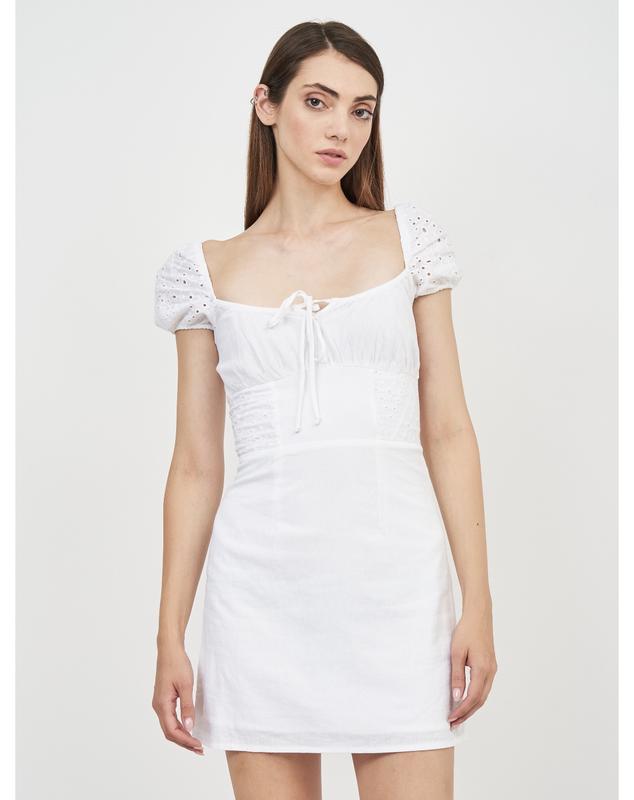 Сукня має підкладку з мʼякої віскози,зверху котон. На спинці резинка. На поясі вставки із прошви. Заміри: Довжина 79 см Бедра 48-49см Під пахвами 38 см (ззаду резинка) Талія 37 см