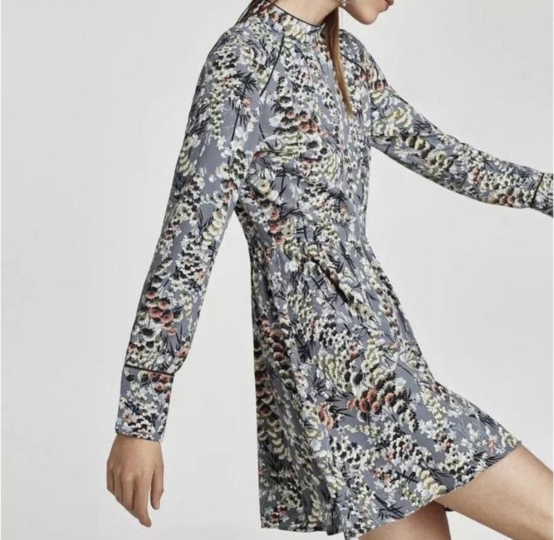 Очень красивое платье от Zara , размер М На груди спереди разрез Цвет голубо-серый Замеры Длина 80 Пог 46 Пот 39 Рукав 60 Плечи 40