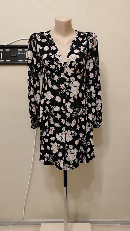 Легкое натуральное черное платье в нежный принт