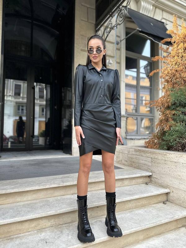#женовременность ▪️Сукня ▪️Артикул: R4957/274 ▪️Размир: 42-44, 46-48 ▪️Ткань: эко-кожа ▪️Цвет: черный ▪️Цена: 720 грн