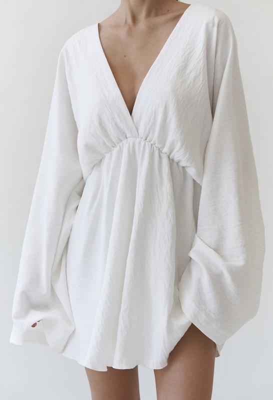 Легкое, универсальное платье из натурального льна Не просвечивается, так как имеет подкладку Размеры XS-S Длина 55см от груди На талии резинка Цвет: молочный Материал: Лен бохо (лён 50%, вискоза 25% хлопок 25%) Надевала один раз на свадьбу