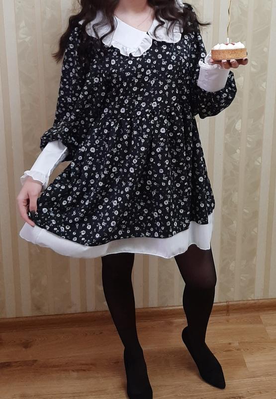 Платье классное, легкое. Воротничок не снимается, рукавчики застегиваются на пуговицы. Одетая один раз в день рождения состояние идеальное.Размер 46. Купила в магазине не из интернета. На этой странице вещи все мое, продаю чтобы не лежащие.