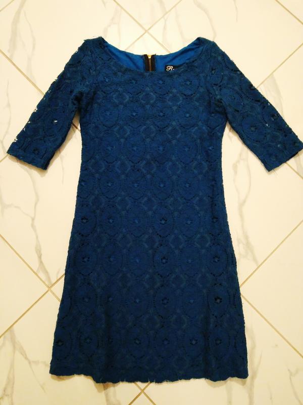 Платье имеет морской цвет, кружевное с подкладкой, рукав до локтя, очень удобное.