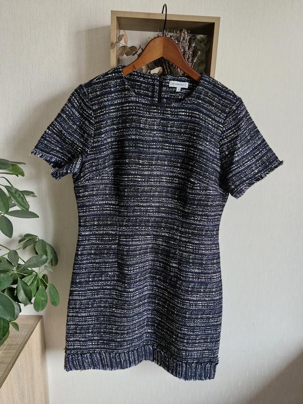 Теплое платье Warehouse по типу твид Размер: 14 42 XL Цвет: темно синий, черный Полу обхват груди - 49 см Полу обхват талии - 43 см Полу обхват бедер - 54 см Ширина плеч - 40 см Длина по спинке - 89 см