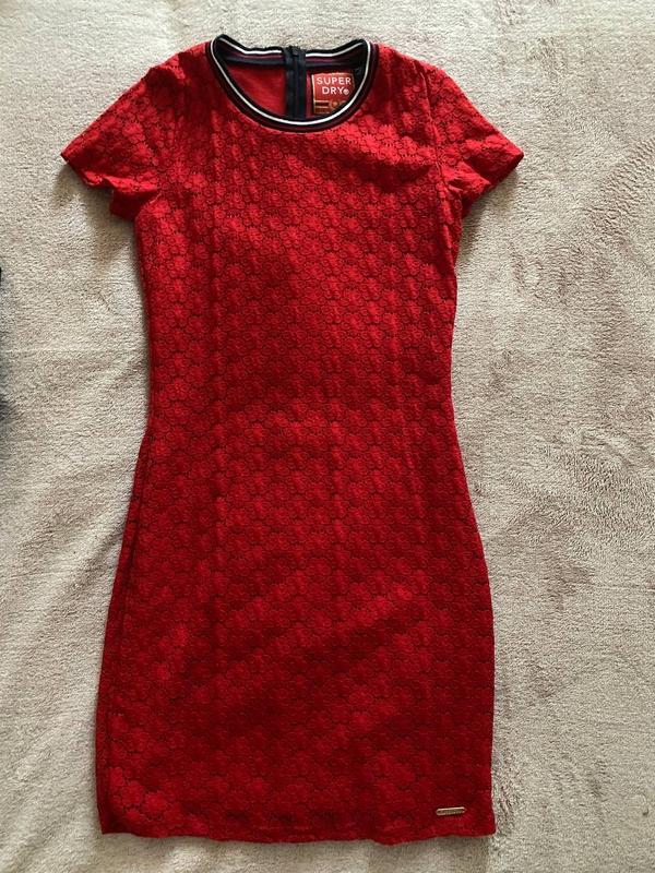 Сукня SuperDry червоного кольору Розмір Xs,S uk 8 us 4 eu 36 Дуже гарна літня сукня або кудись на вихід. вдягалася тільки 1 раз стан 10/10 зверху еластичне мереживо(?) Гіпюр з візерунком у квіточки,а знизу підкладка,тому воно зовсім не колюче.