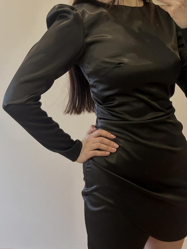 Черное атласное платье р- М Очень круто смотрится под туфли и под сапоги