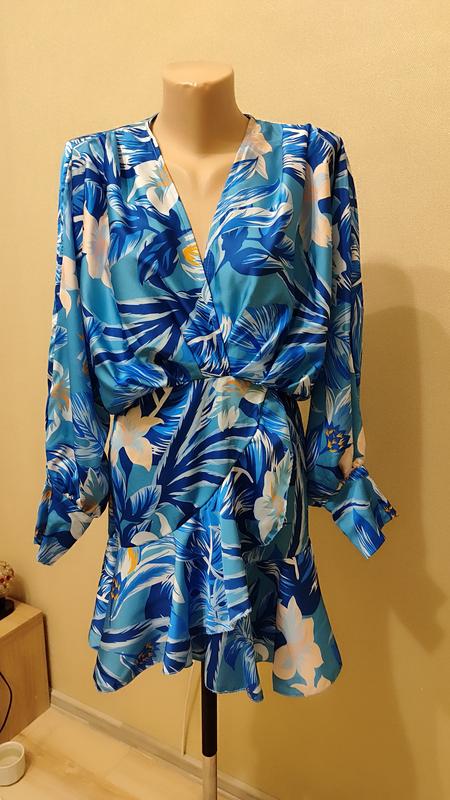 Атласное яркое платье на запах.Пот-33 (тянется до 39), длина-87