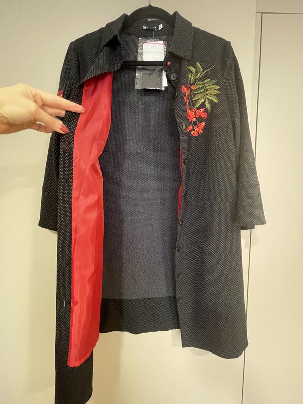 По боках врізні кишені Спереду червоний підклад , гарно виглядатиме і в розстібнутому вигляді . загалом дуже якісно та охайно пошита .