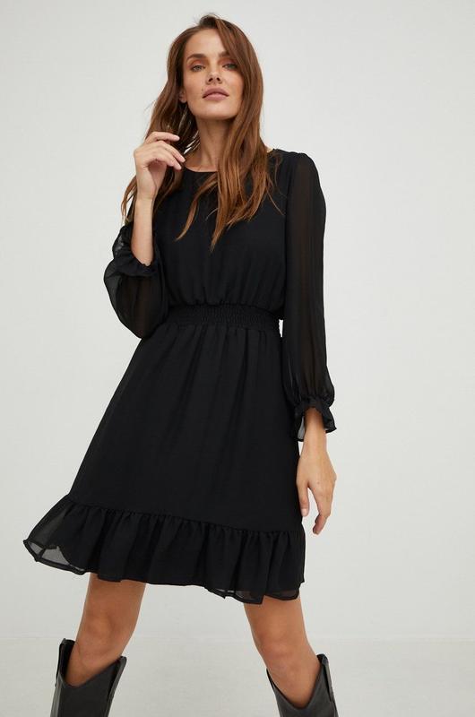 Базове чорне платтячко. Манекен розмір S Спина-40 см ПОГ-52 см ПОТ-35 см - резинка.( тягнеться до 50 см) ПОБ-60 см Довжина-98 см Рукав-62 см. Низ плаття на підкладі.
