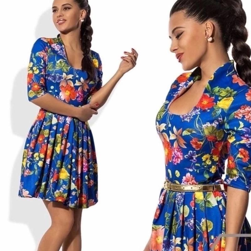скидки 270грн Платье 314 Размеры: 42; 44; 46; 48 Ткань: Французский трикотаж (принт); поясок в комплекте, сбоку потайная молния. Длина 88 см. - 42 - ОГ 84-88 см Талия 70-74 см - 44 - ОГ 88-92 см Талия 72-76 см - 46 - ОГ 92-96 см Талия 76-80 см - 48 - ОГ 96-100 см Талия 80-84 см код1705(диа)