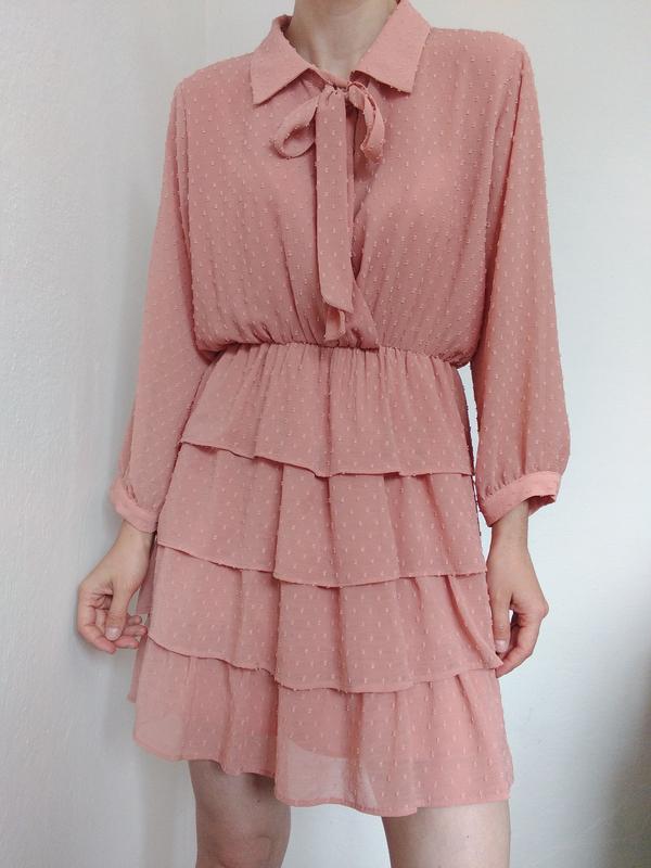 Пудровое платье с воланами платья с рюшами платья короткое платье ярусное легкое платье