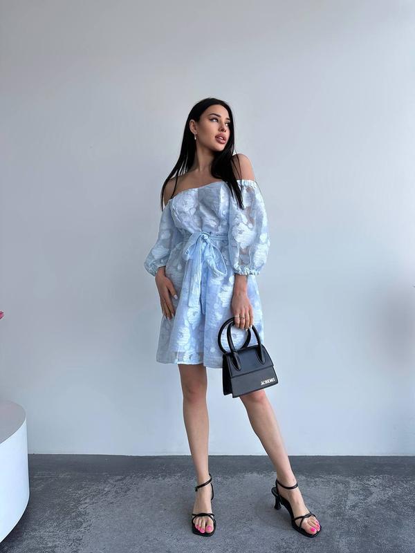 Сукня 2881 Розміри 42-46,48-52 Р 42-46. Пояс у комплекті. довжина 90см Груди 96см Спідниця на складанні 130см Р 48-52 обхват грудей 110см Тканина органза, підкладка бавовна.