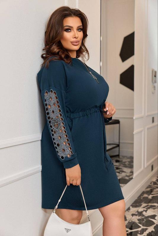 Сукня -спорт шик. " стрази на рукавах" # 258 (Ал-Коз) Цена 1200грн Размеры: 48-50, 52-54, 56-58. Размеры идут спаренные. Тканина: Двухнитка хорошего качества, декорировано стразами на рукавах качества DMS Дополнительные характеристики: Платье полуприталенного покроя. Рукава декорированы стразами высокого качества DMS, хорошо держатся на ткани. На талии идет кулиска, для хорошей фиксации фигуры. Спереди по комоде платья идет молния. С карманами. Цвета изделия: Черный. Лаванда. Бутилочный. Серый- темный. Синий.