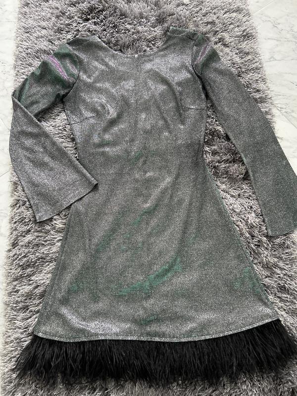 Плаття в блискітки сріблясто-зелене з красивим переливанням кольору Довжина 80 см і пірячко 7 см Рукав 56 см ОГ 38 см ОТ 32 см ОБ 42 см