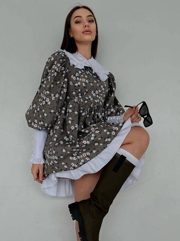Сукня вільного крою з об'ємними рукавами та зі знімним комірцем і манжетами Розмір: one-size Матеріал: льон, бавовна Ціна 1240 грн