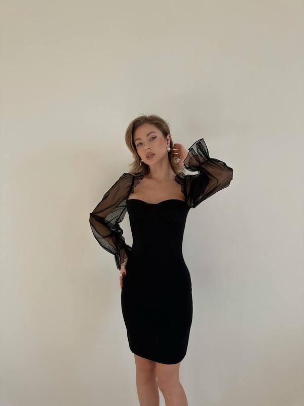 Модель 688 Женское платье Размерный ряд S,M,L,XL Ткань основы креп дайвинг, рукава сеточка Очень качественное и стильное платье Цвет черный