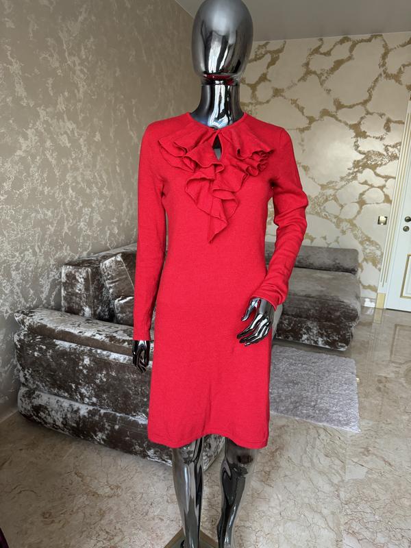 Фірмове плаття , носила мало , місцями невеликі катишкі , можна і руками прибрати , так як в складі шерсть , все як на фото , тільки комір червоний , не такий яркий як на фото . Довжина 90 Рукав 60 Ширина під руками 45 Талія 38 Бедра 43 Добре тягнеться