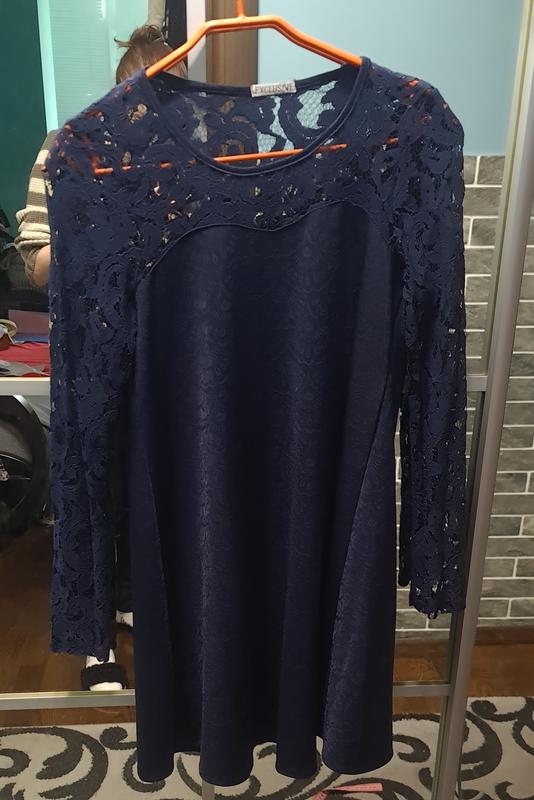 темно синего цвета.Ткань тиснения,рукава кружево. Стан идеален. Оверсайз.Полуобхват в груди 42.5см.